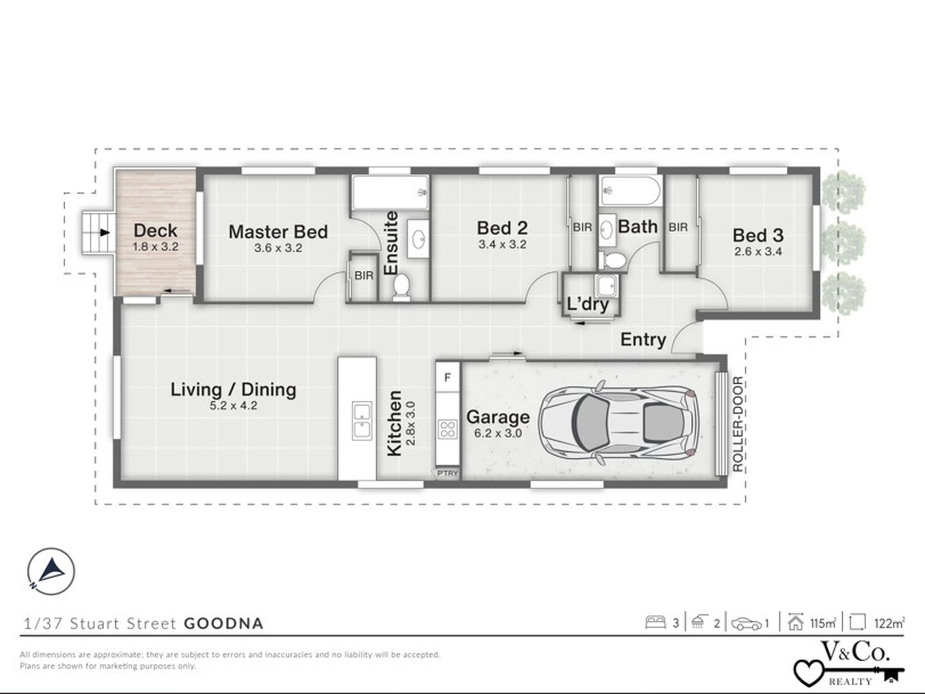 PLEASE NOTE: Whilst every care is taken in the preparation of the information contained in the marketing, V & Co. Realty will not be held liable for any errors in typing or information.