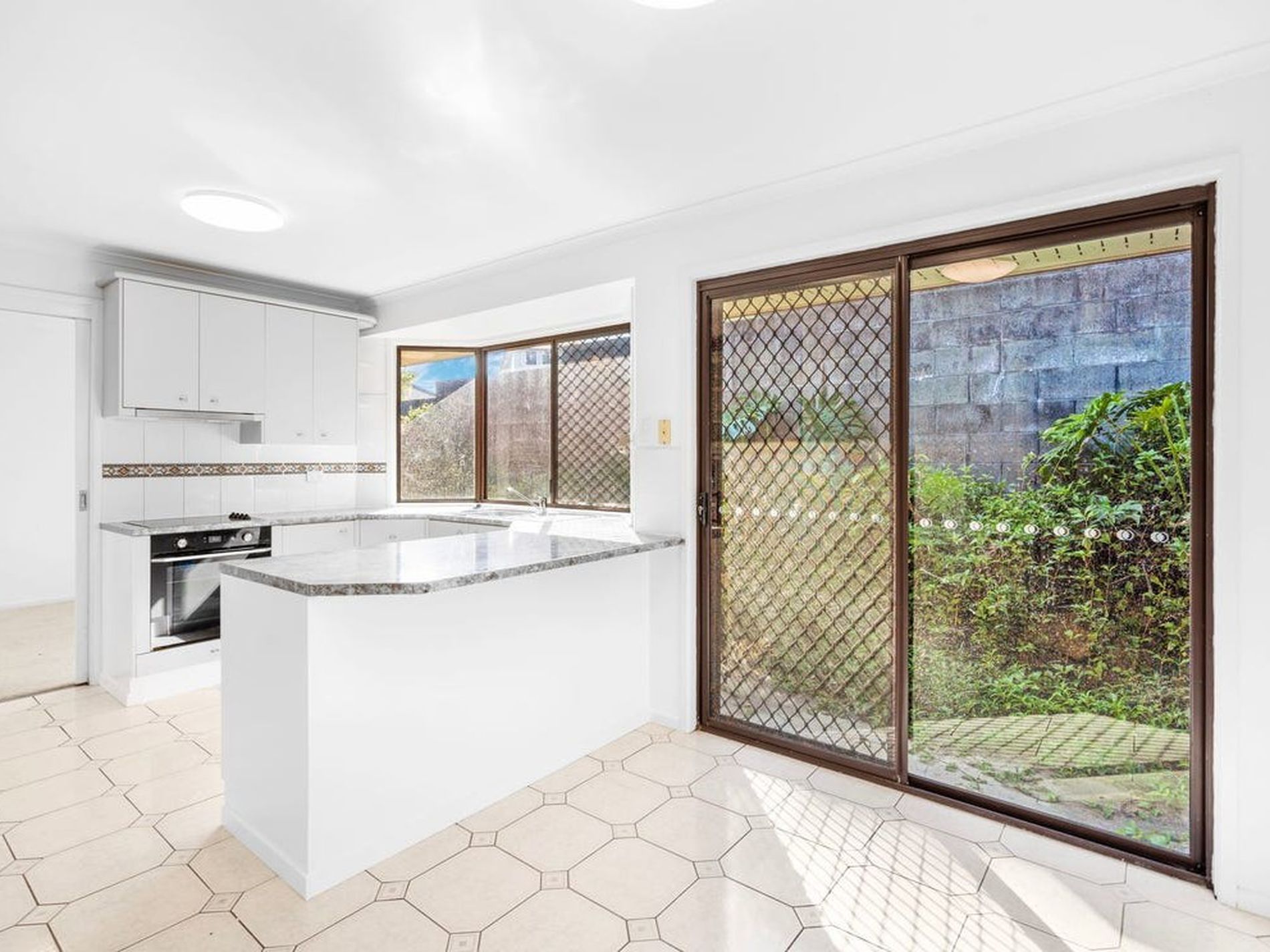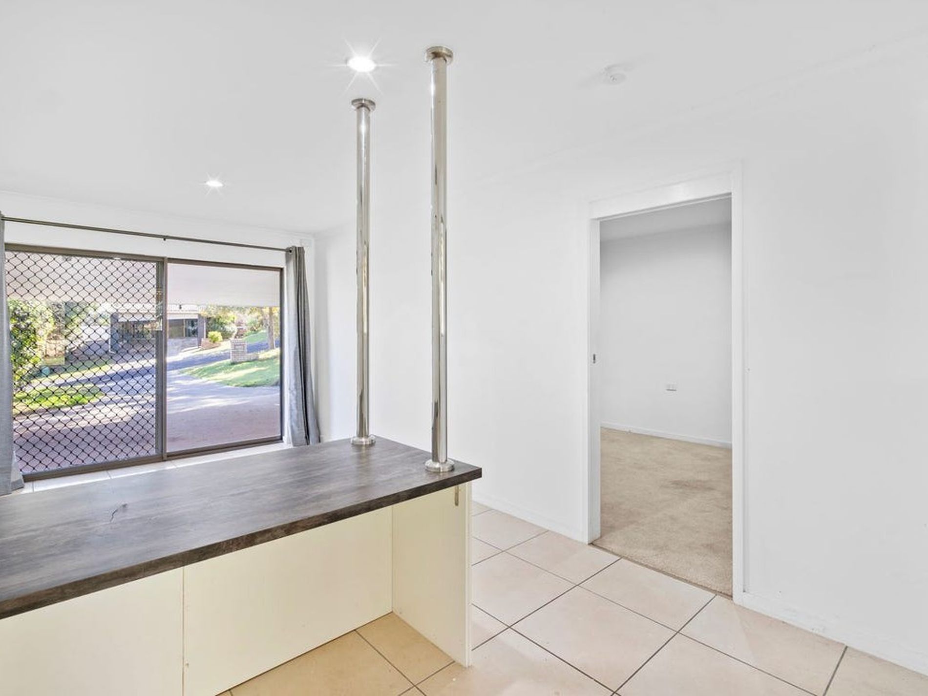 * Tidy kitchen featuring ample cupboard space, a breakfast bar and near-new stainless-steel appliances including a dishwasher