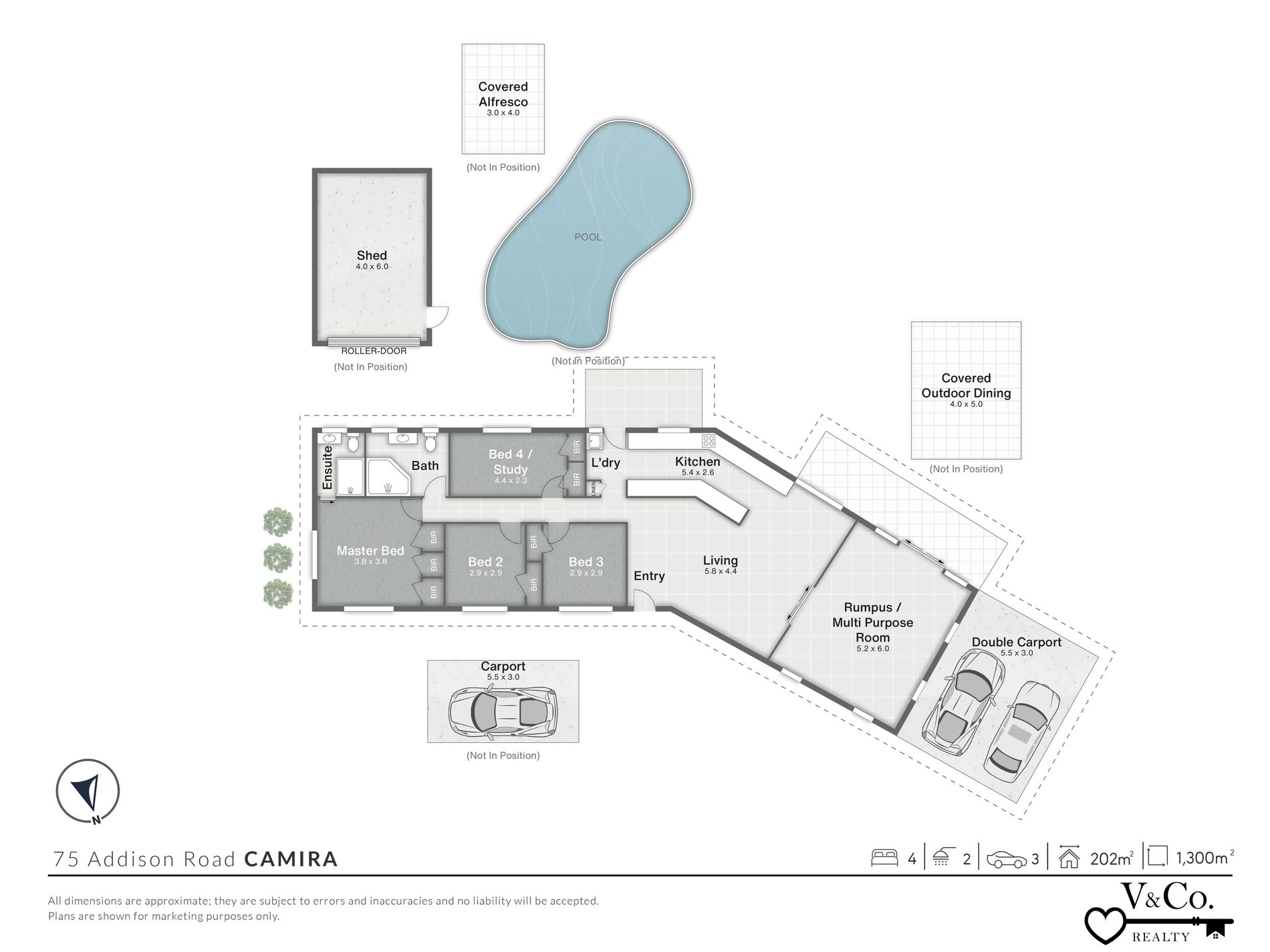 PLEASE NOTE: Whilst every care is taken in the preparation of the information contained in the marketing, V & Co. Realty will not be held liable for any errors in typing or information.