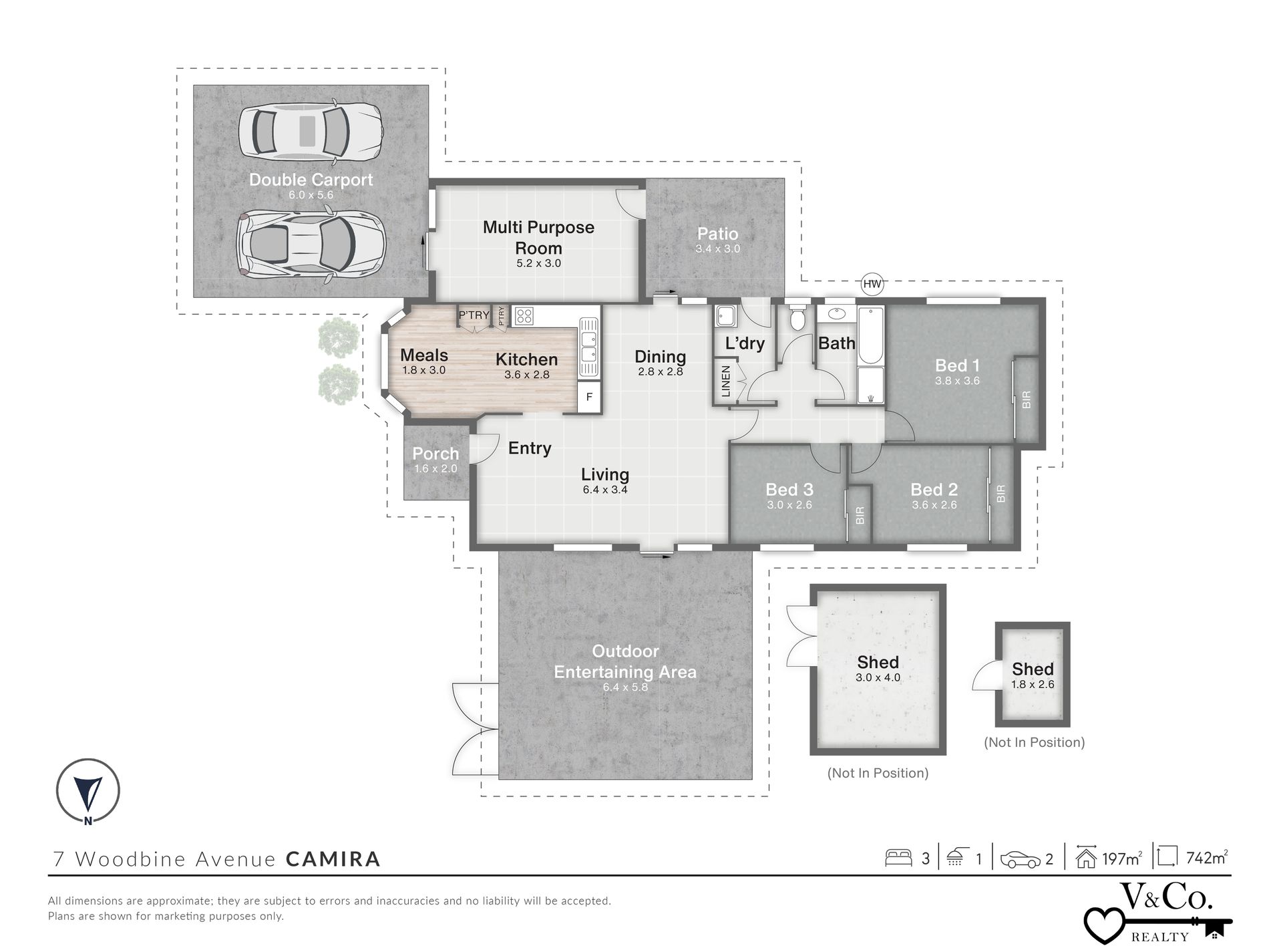 PLEASE NOTE: Whilst every care is taken in the preparation of the information contained in the marketing, V & Co. Realty will not be held liable for any errors in typing or information.