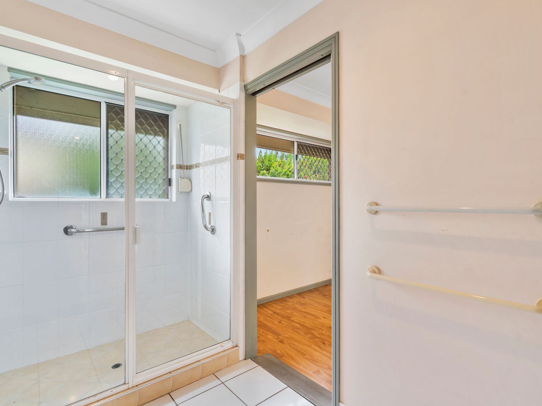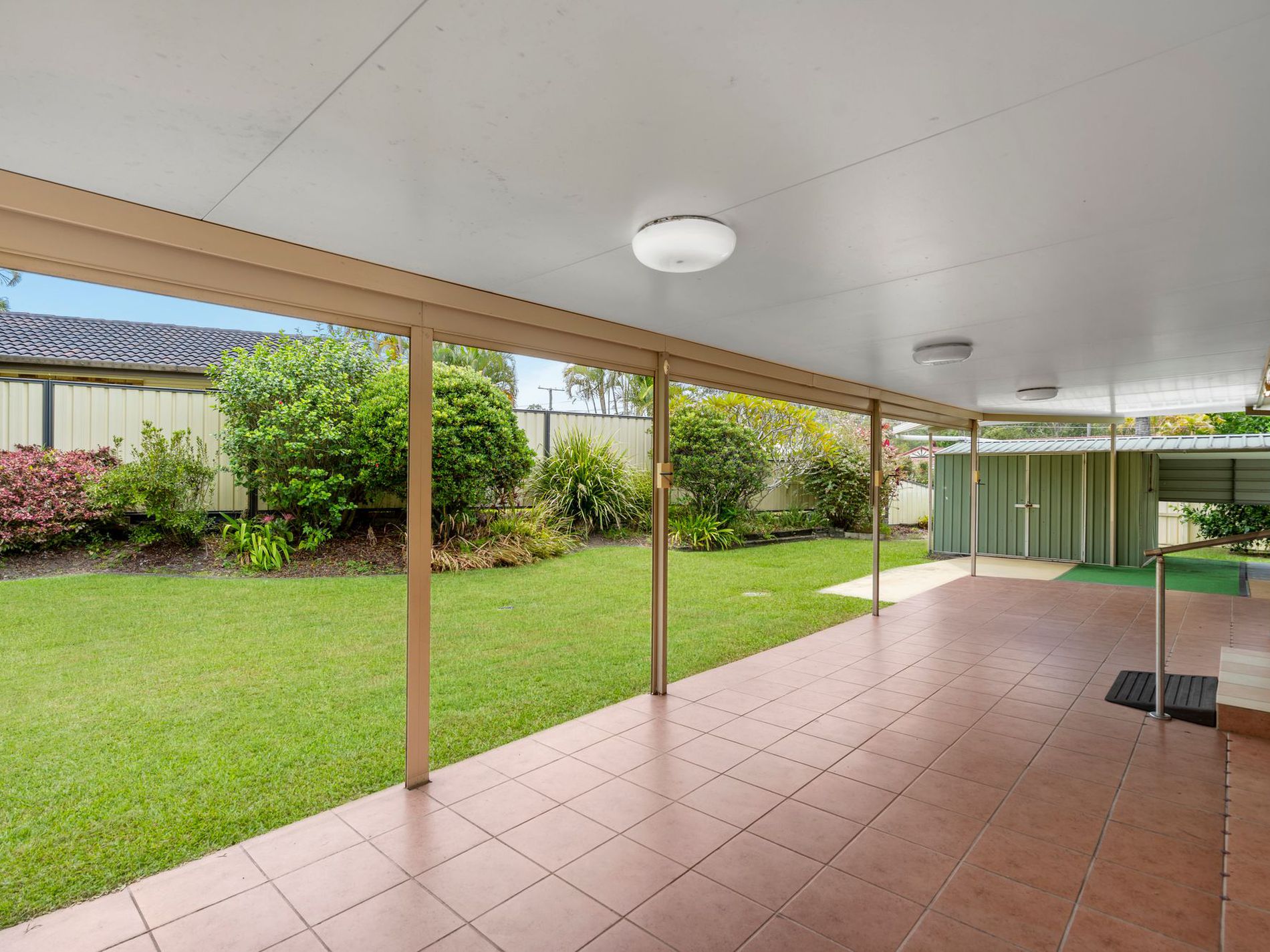 * Tiled patio with roller shutters