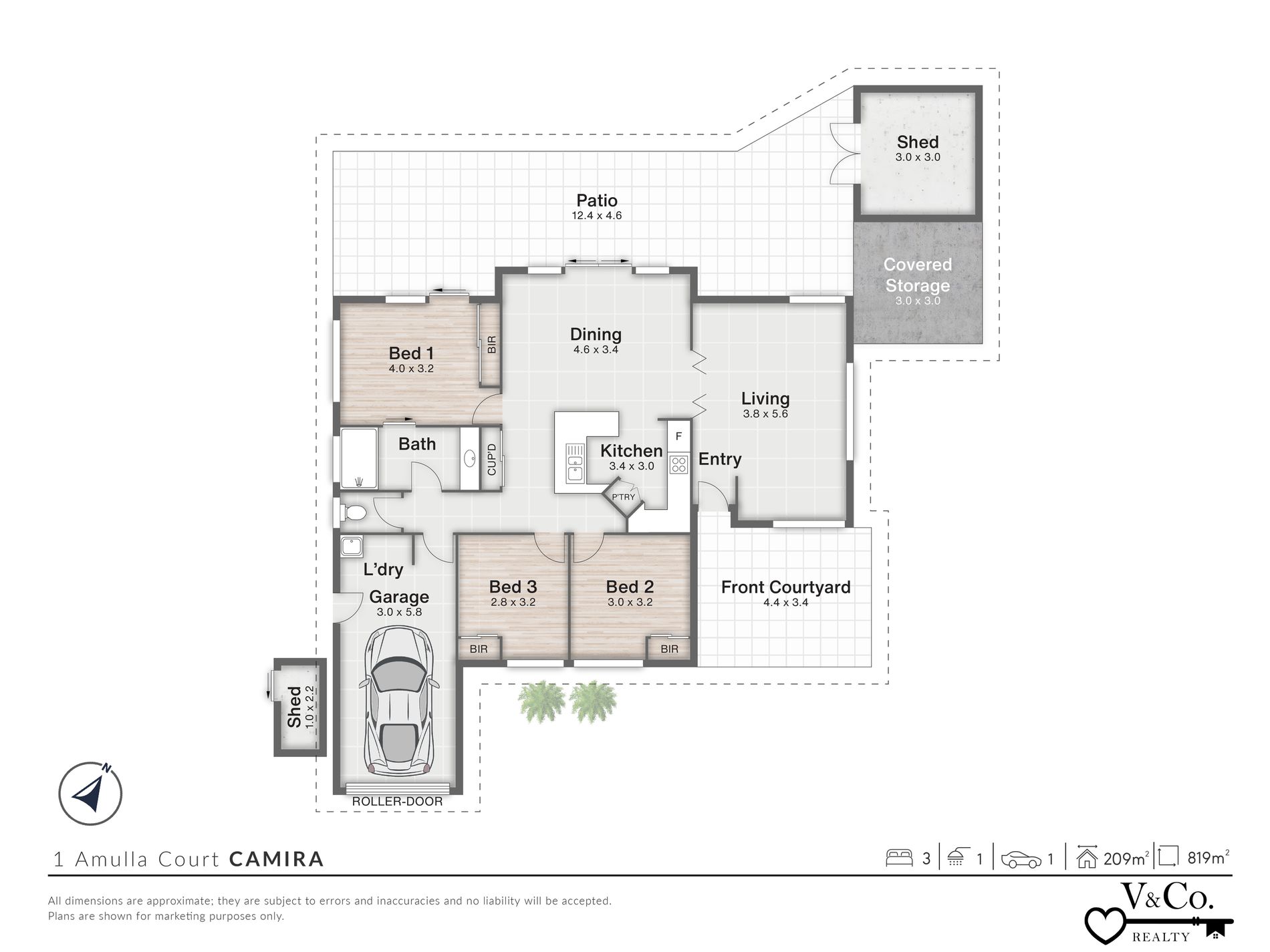 PLEASE NOTE: Whilst every care is taken in the preparation of the information contained in the marketing, V & Co. Realty will not be held liable for any errors in typing or information.